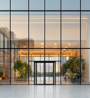 Tempered and laminated glass solutions that meet safety standards, ideal for high-traffic areas, public spaces, and commercial environments.